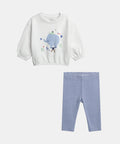This newborn set includes a cotton fleece sweatshirt with a circus elephant design and snap button openings at the shoulders, paired with striped cotton ribbed leggings with elasticated cuffs. It is comfortable and easy to put on, providing your baby with gentle everyday comfort.