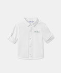 This soft and elegant shirt is perfect for spring and summer. Made from a cotton-linen mix it features a straight cut with roll-up sleeves. Embroidery on the chest adds a poetic touch.
