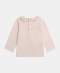 This powder pink top combines softness, lightness, and comfort for easy-going days. Made from soft, breathable jersey cotton, it is gentle on a baby's sensitive skin. The ruffled cotton voile collar adds a refined and charming touch, while the colorful circus print brings a joyful and playful note. Practical, it opens at the back with snaps for easy and quick dressing.