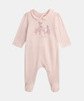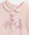 Pink Pointelle Giraffe Print Cotton Sleepsuit