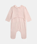 Soft and enchanting, this pink animal-patterned romper is a true cocoon of tenderness for your child's nights. Made from 100% cotton pointelle knit, it combines exceptional softness and breathability thanks to its small openwork patterns. Its illustrations of a giraffe and an elephant surrounded by subtle flowers bring poetry and charm to your baby's silhouette. Practical, its full back opening makes dressing easy while ensuring a perfect fit.