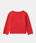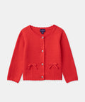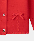 For little ones with an elegant style during fall and winter, this light red cardigan is warm and comfortable. The full button opening and scalloped finishes add softness, while the embroidered bows bring a refined and charming touch.