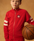 Designed for active children. The soft fleece provides comfort. The contrasting stripes and raised print evoke the world of tennis.