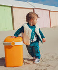 This reversible fleece vest is perfect for baby boys on cool autumn and winter days. A soft sherpa side and a quilted front offer warmth and comfort as needed. The fox animation on the front and snap opening make it easy to dress in style.