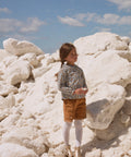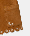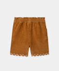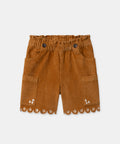 Ideal for children who like to move about in any season, these yellow corduroy shorts combine comfort and fantasy. They feature two side pockets and shell trims enhanced by English embroidery. Its elasticated, adjustable waistband makes it easy for parents to wear.